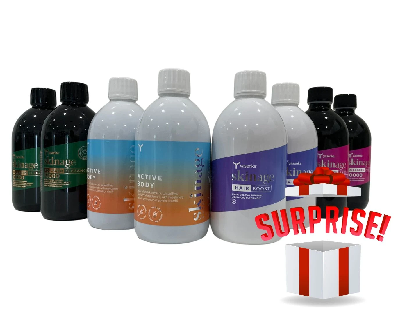 A - yasenka maxi box 6: elegance x2, hairboost x2, prestige x2, active body x2 (plus poklon iznenađenjaa)