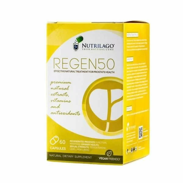 REGEN50 kapsule učinkovito održavaju zdravlje prostate i mokraćnog sustava. One su jedinstveno, snažno, prirodno, neinvazivno i sigurno sredstvo za prevenciju i usporavanje bolesti poput dobroćudnog povećanja prostate (benigne hiperplazije prostate BHP), hipertrofije, prostatitisa te zdravstvenih tegoba poput teškog pražnjenja mokraćnog mjehura, učestalog mokrenja noću i danju, bježanja urina, urgencije, slabog mlaza mokraće, čekanja na početak mokrenja, isprekidanog mlaza, osjećaja nepotpunog pražnjenja, kapanja nakon mokrenja i bolnog mokrenja.