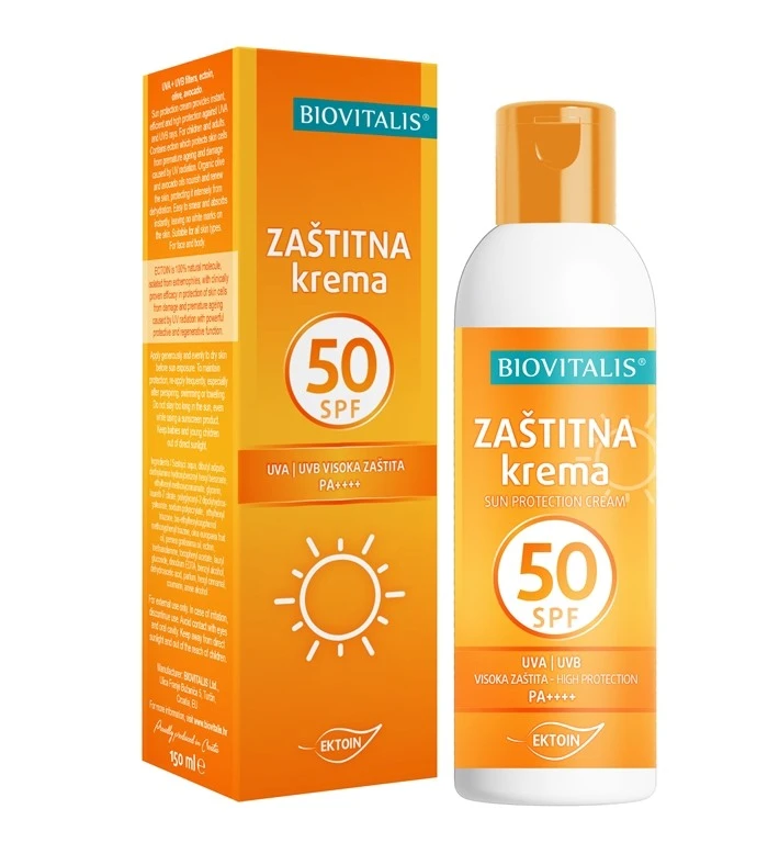 Zaštitna krema SPF 50 uz visokoučinkovite UV filtere, dodatno sadrži ektoin. Ektoin je snažna 100% prirodna molekula izolirana iz ekstremofila. Ekstremofili su organizmi koji preživljavaju u ekstremnim životnim uvjetima (vrlo visoka temperatura i velik salinitet). In vivo studijama je dokazano da ektoin štiti stanice od oštećenja i prijevremenog starenja izazvanog UV zračenjem.