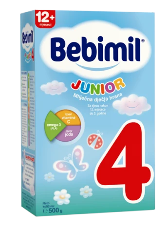 - u odnosu na kravlje mlijeko, sastavom prilagođeniji potrebama male djece, kao užina ili obrok: Bebimil junior mlijeko, uz kruh i omiljeni namaz ili pomiješan s dječjim žitaricama (müsli, cornflakes)